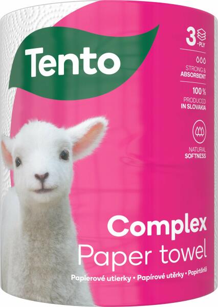 Az új Tento Complex papírtörlő egy innovatív termék melyben 1 rétegű ipari törlőkendő és 2 rétegű papírtörlő sikeresen ötvöződik. Az erős, kék réteg kiválóan eltávolít bármilyen szennyeződést. A két fehér papírréteg szivacshoz hasonló nedvszívó réteg, mely felszárítja és fényesíti a felületet.
